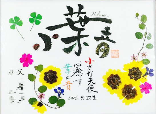 | ・ご依頼作品の目的、イメージなどのご希望をお聞きします ・ご希望に基づき、筆文字サンプルをメール添付でご提案いたします ・決定作品に押し花を添え、額にお入れし完成です ・包装やのしをご希望の方はお知らせください ・贈答品としてご購入の場合は包装した作品の写真を添えて配送いたします |